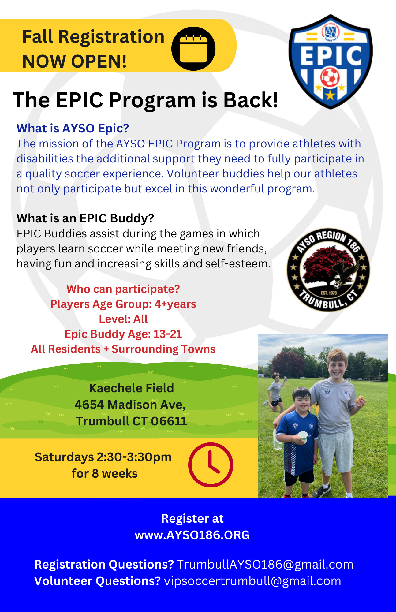 Kaechele Field (by Madison Middle School), 4654 Madison AveTrumbull, Connecticut 06611